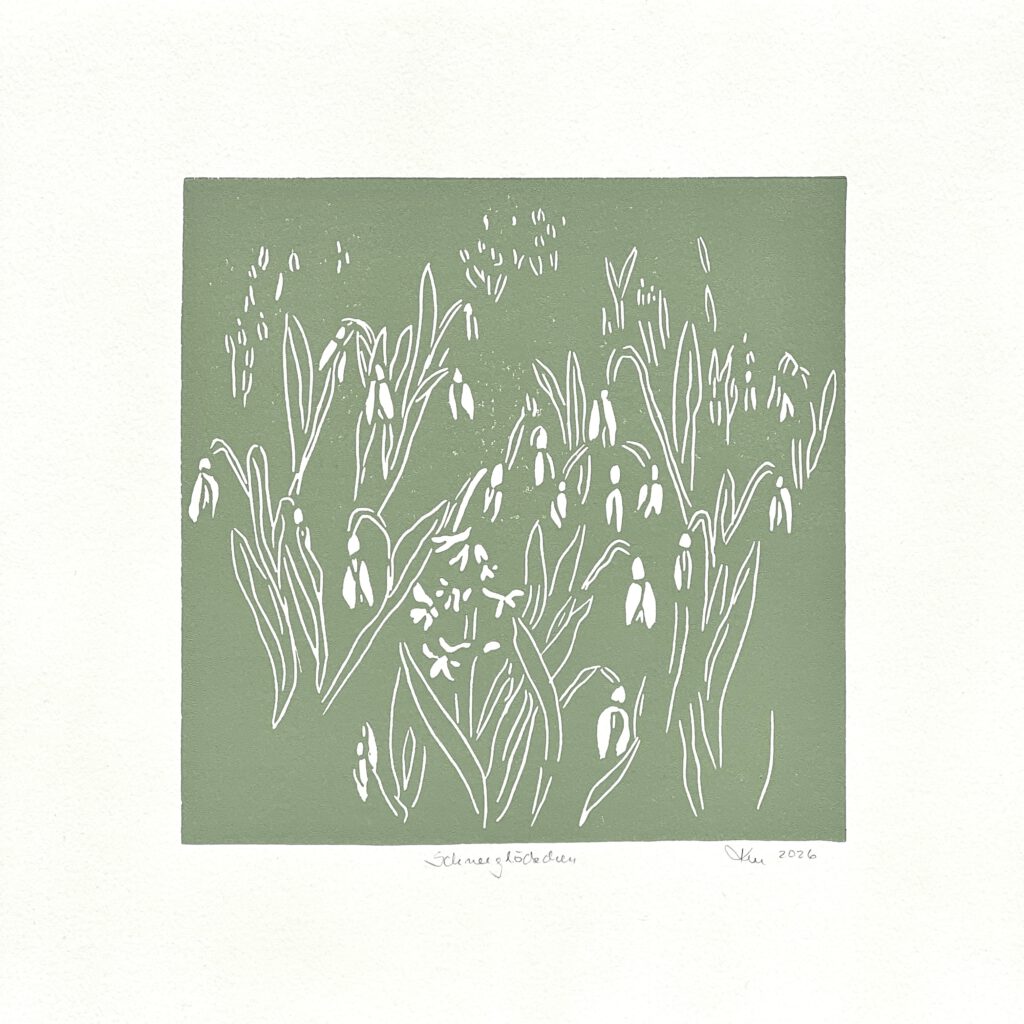 What‘s new? Eine kleine Frühlingsserie – Es wird grün! Schneeglöckchen, 30 x 30 cm auf Holz Schneeglöckchen, Linoldruck 19 x 19 cm auf 30 x 30 cm Papier, salbeigrün The golden egg, 20 x 20 cm auf Holz Zeit für Tee, 20 x 20 cm auf Holz Gaura, Linoldruck 21 x 21 cm auf 30 x 30 cm Papier, salbeigrün